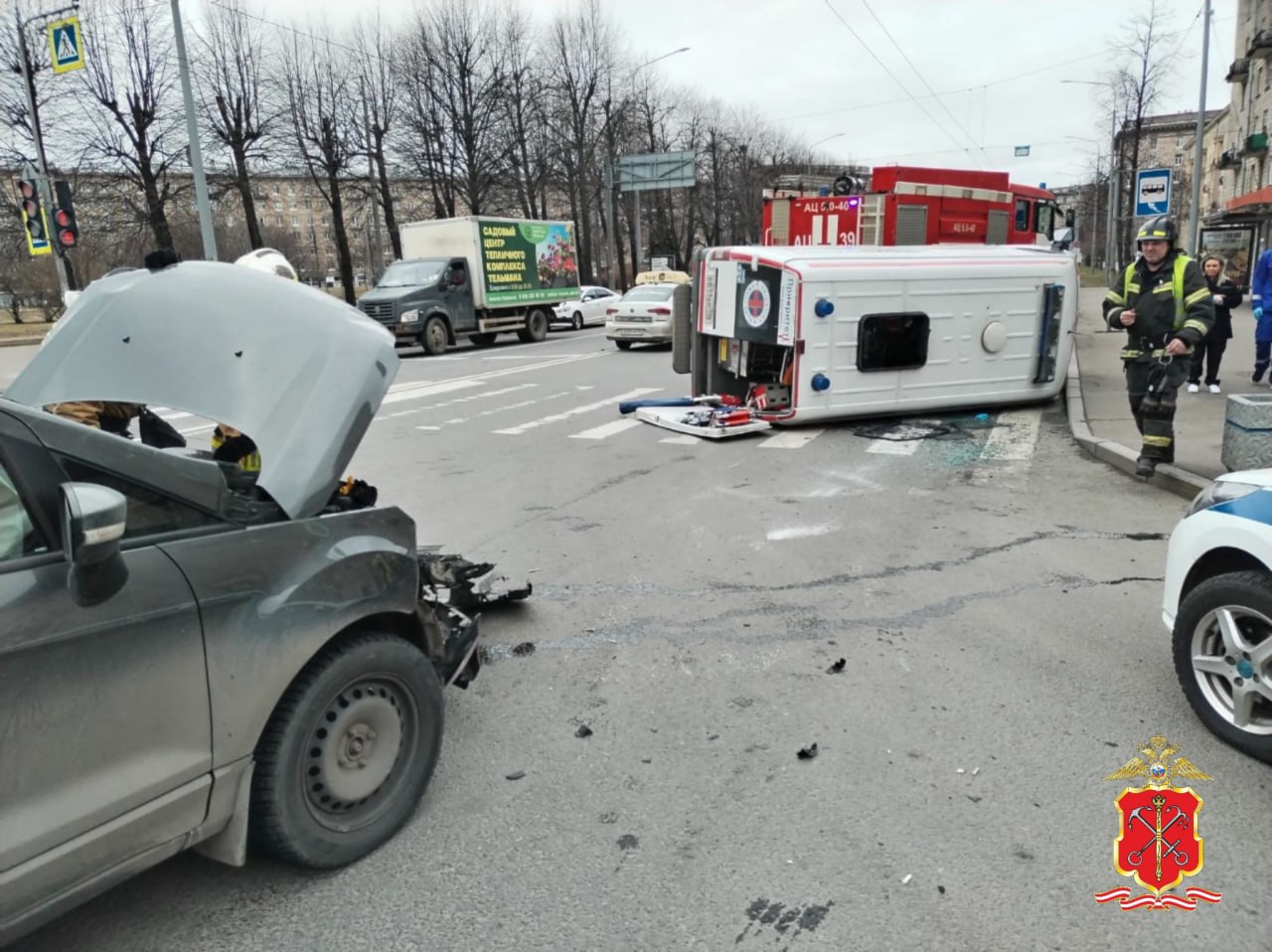 Днем 2 апреля стало известно об аварии, произошедшей на перекрестке Краснопутиловской улицы и улицы Маршала Говорова. В результате столкновения машина скорой помощи перевернулась на дороге. Об этом сообщает ГУ МВД по Петербургу и Ленобласти.