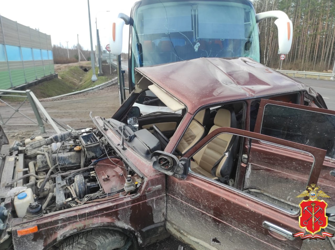 На кадрах с места аварии видно, что сильнее всего в происшествии пострадала Нива – покореженные двери торчат под неровными углами, стекла авто разбились и высыпались на землю. Автобус же повредил переднюю часть и разбил лобовое стекло.