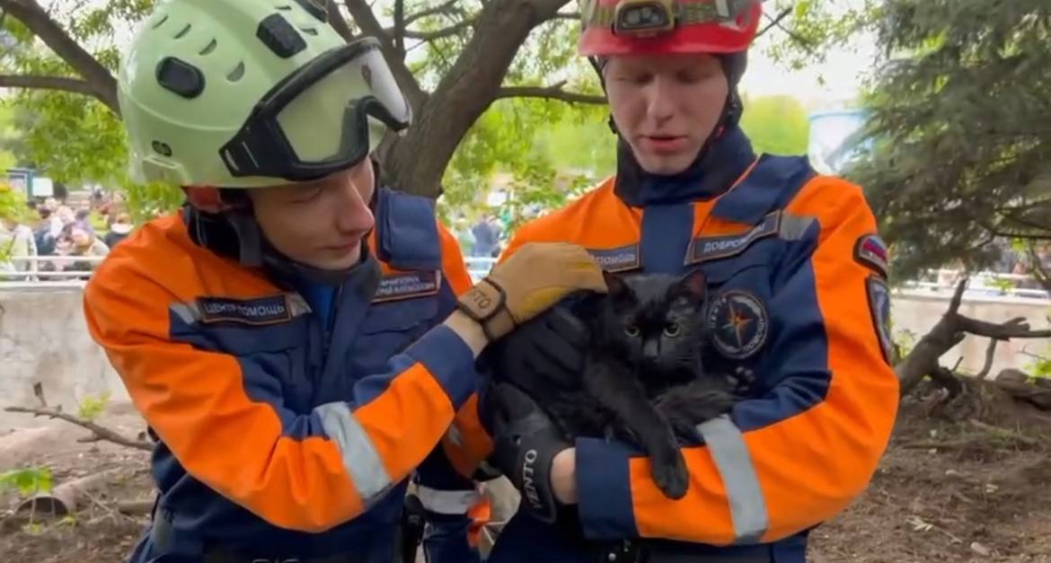 Тогда на помощь позвали сотрудников из специальных служб. Спасатели быстро прибыли в зоопарк. Снаряженные лестницей, они оперативно сняли животное, коим оказался перепуганный черный кот.