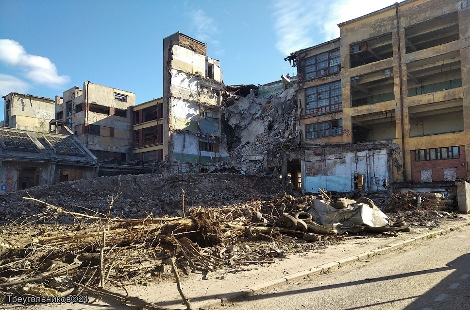 В Петербурге стартовал процесс сноса одной трети главного корпуса бывшей ЛПТО «Красное знамя», расположенного по адресу Пионерская улица, 53. Об этом сообщил Александр Треугольников. На данный момент завершён снос флигеля, известного как «Набивной корпус» (чулочно-красильный), а также начат снос торцевой части производственного корпуса.