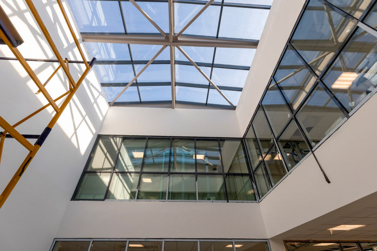 В скором времени через дорогу от малоэтажного жилого комплекса «Кронфорт» завершится строительство лицея на 550 мест. Его особенности – зал-атриум с трансформируемыми стенами и лестницей-амфитеатром и обширный физкультурный блок на прилегающей территории. Сейчас внутри здания проводятся пуско-наладочные работы инженерных систем. В октябре объект будет готов к вводу в эксплуатацию.