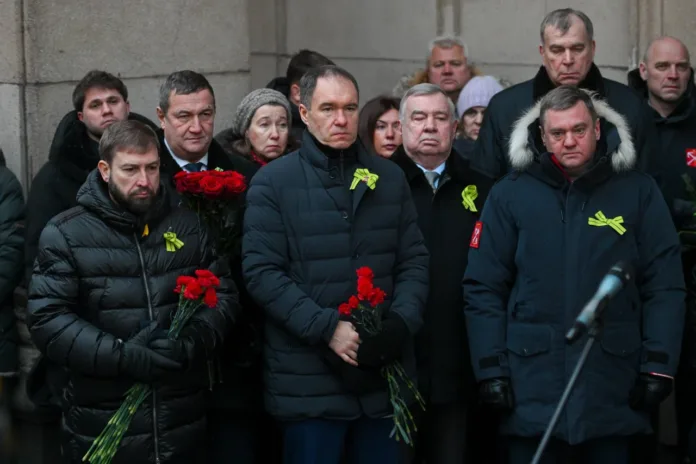 Во вторник на Невском проспекте состоялся митинг и возложение цветов к мемориальной доске в честь ленинградцев. В церемонии приняли участие представители городских властей, ветераны и школьники.